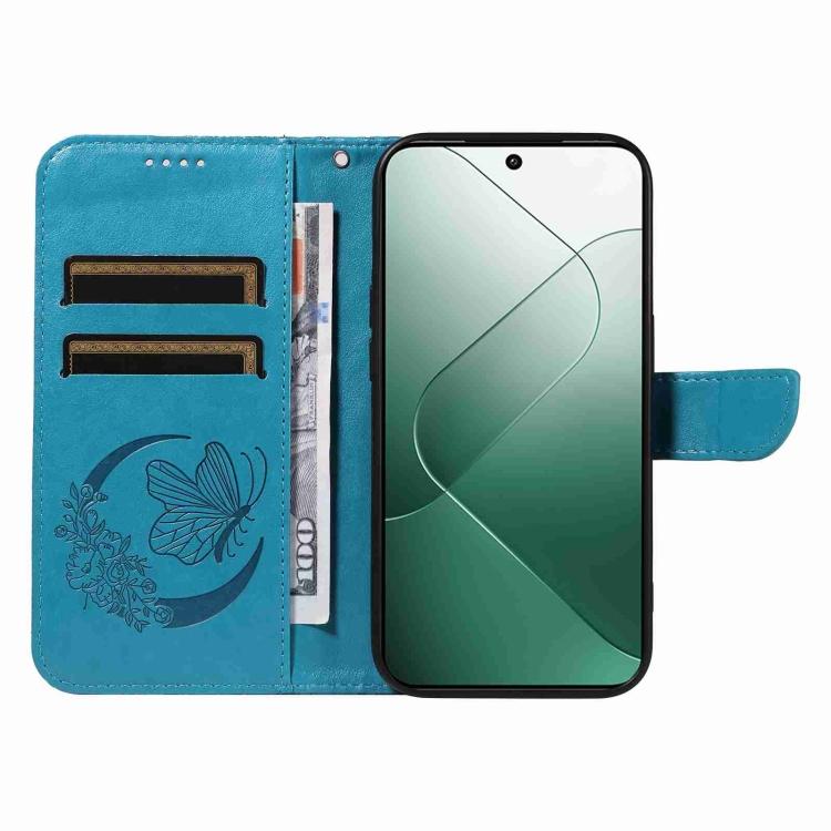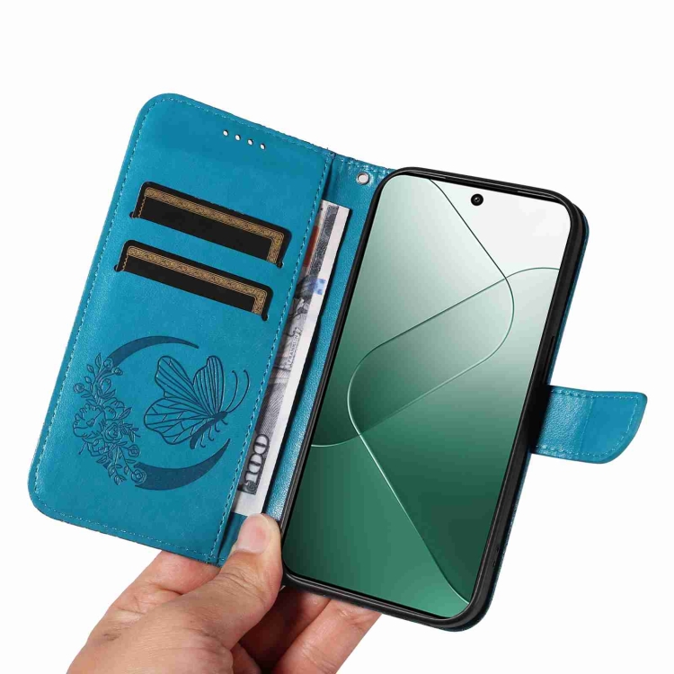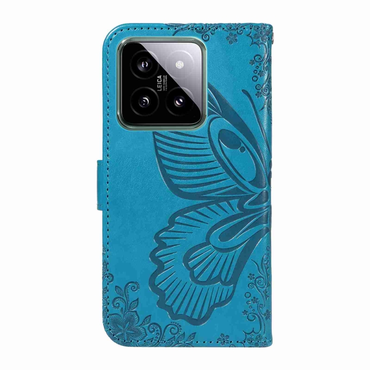 Para Xiaomi 14 Swallowtail Butterfly Funda De Teléfono De Cuero En Relieve (Azul)