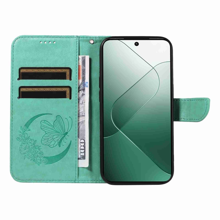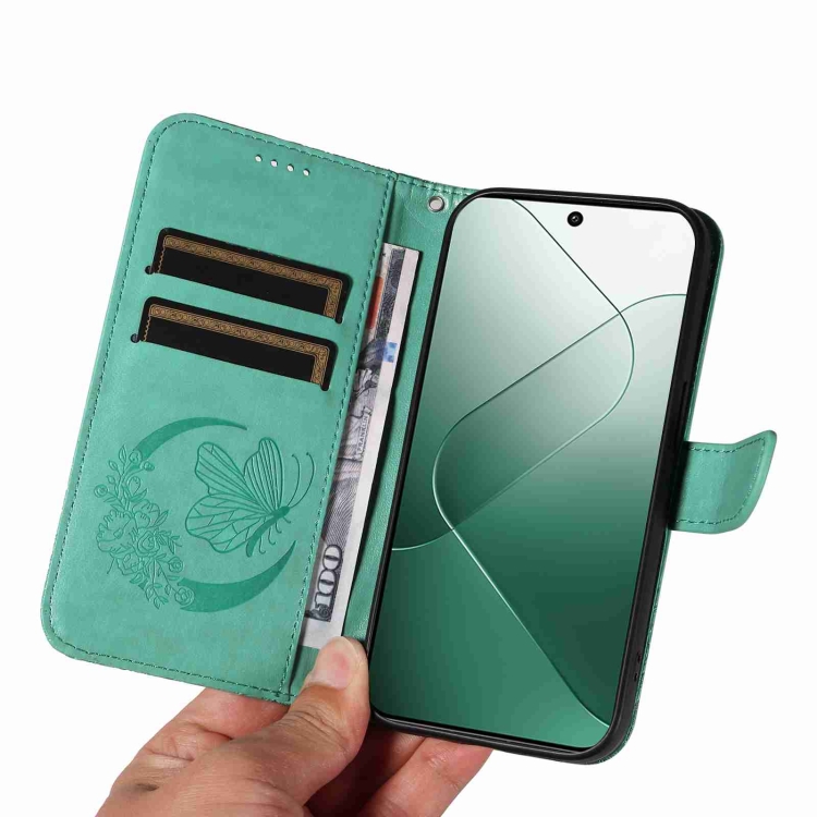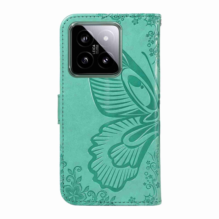 Para Xiaomi 14 Swallowtail Butterfly Funda De Teléfono De Cuero En Relieve (Verde)
