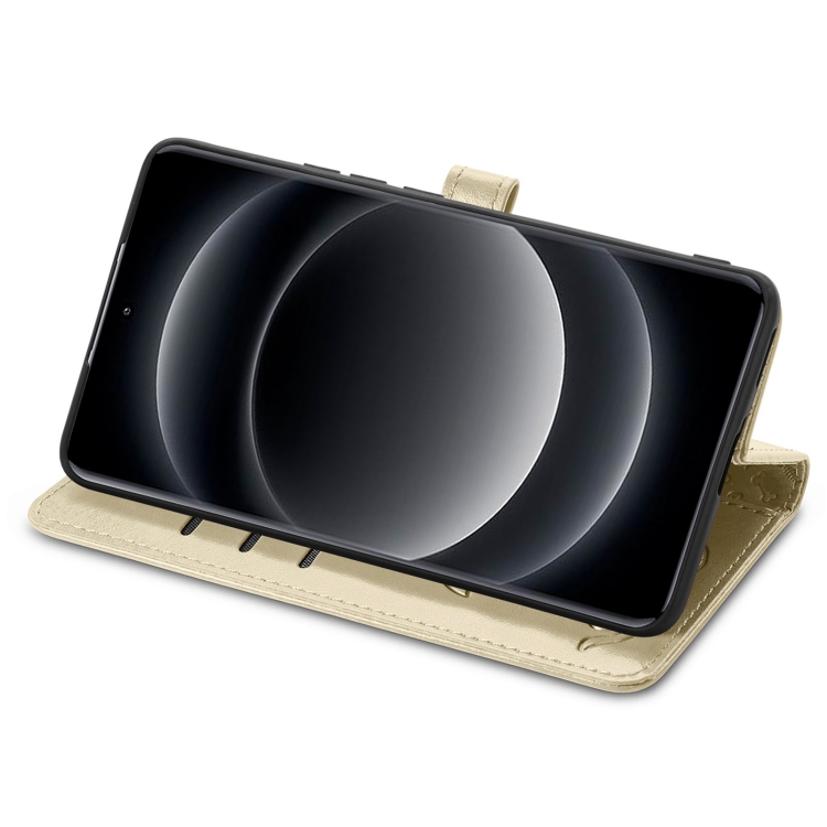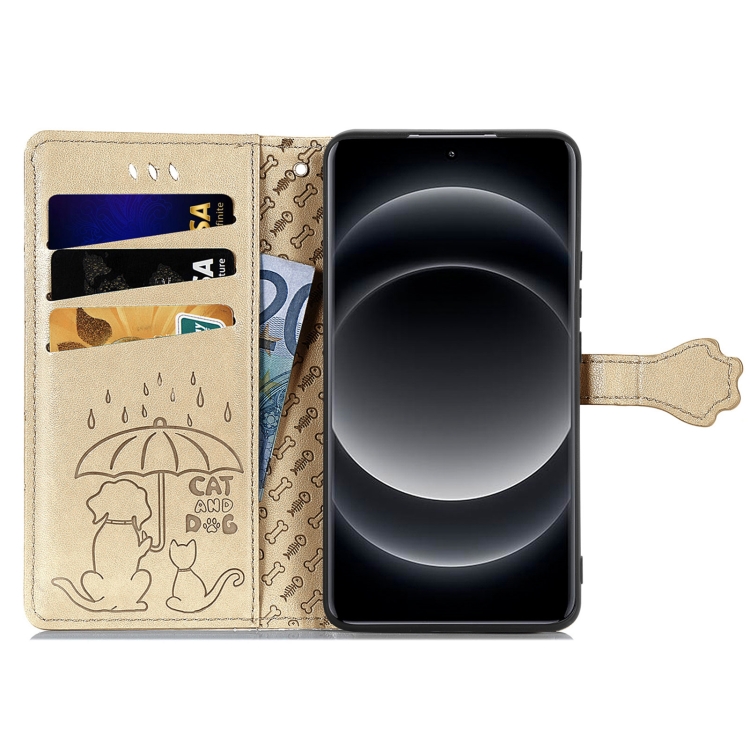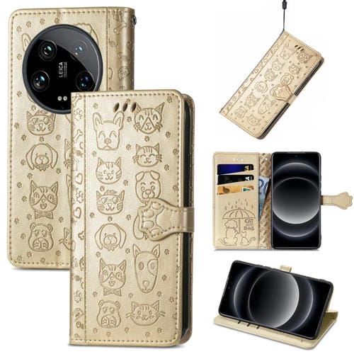 Para Xiaomi 14 Ultra Funda Para Teléfono De Cuero Con Relieve De Gato Y Perro (Dorado)