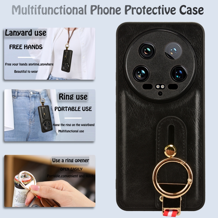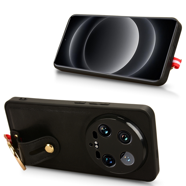 Para Xiaomi 14 Ultra Pulsera Funda Trasera De Cuero Para Teléfono (Negro)
