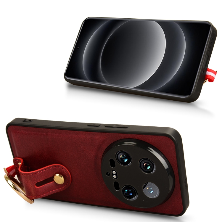 Para Xiaomi 14 Ultra Pulsera Funda Trasera De Cuero Para Teléfono (Rojo)