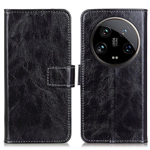 Para Xiaomi 14 Ultra Retro Crazy Horse Texture Funda De Cuero Para Teléfono (Negro)