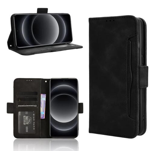 Para Xiaomi 14 Ultra Skin Feel Becerro Textura Ranuras Para Tarjetas Funda De Cuero Para Teléfono (Negro)
