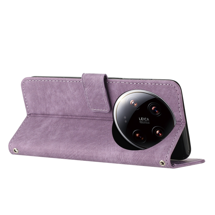 Para Xiaomi 14 Ultra Skin Feel Funda De Cuero Con Patrón De Rayas Y Cordón Largo (Púrpura)