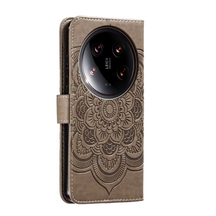 Para Xiaomi 14 Ultra Sun Mandala Funda De Cuero Para Teléfono Con Patrón En Relieve (Gris)