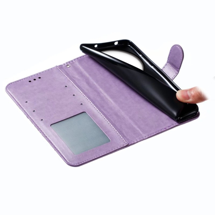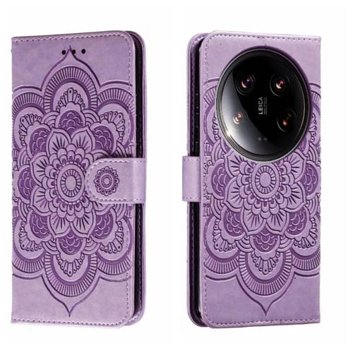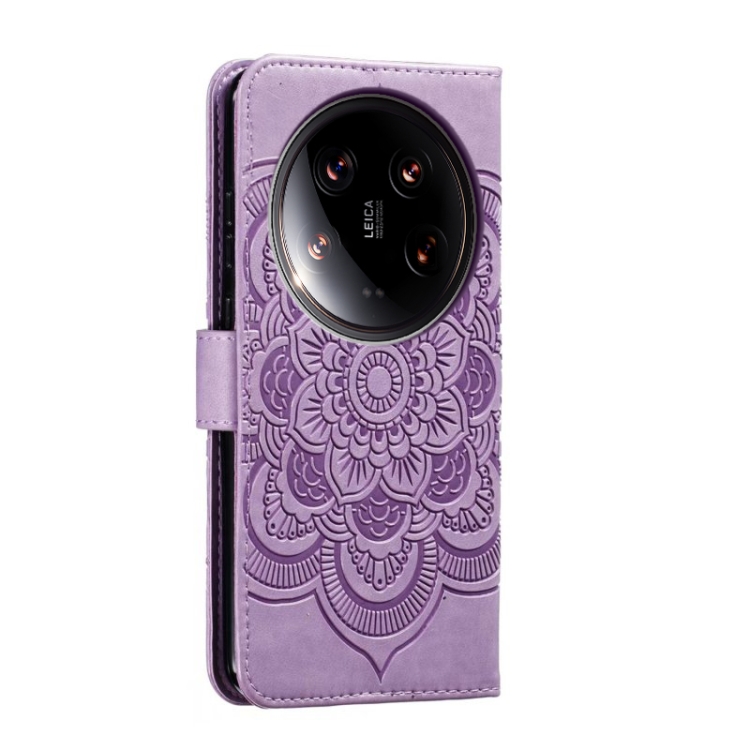 Para Xiaomi 14 Ultra Sun Mandala Funda De Cuero Para Teléfono Con Patrón En Relieve (Púrpura)