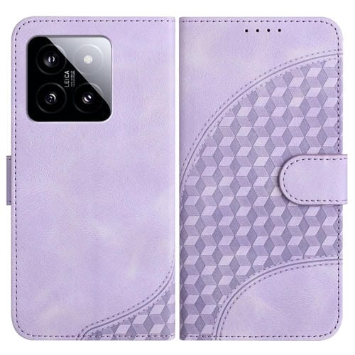 Para Xiaomi 14 Yx0060 Funda De Cuero Para Teléfono Con Relieve Y Cabeza De Elefante Con Cordón (Púrpura Claro)