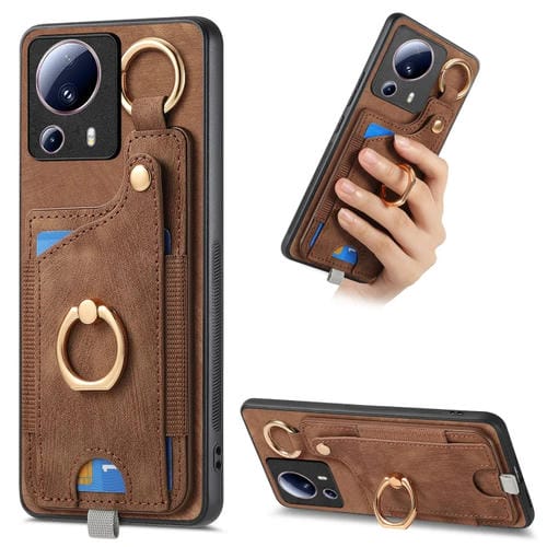 Para Xiaomi Civi 2 Funda para Teléfono con Bolsa para Tarjeta con Anillo y Sensación de Piel Retro con Lazo para Colgar (Marrón)