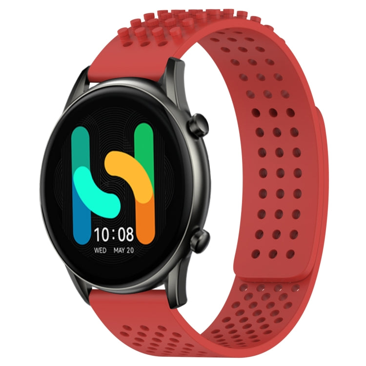 Correa de Reloj de Silicona para Xiaomi Haylou Rt2 Ls10 con Puntos 3D Transpirables y Orificios de 22mm (Rojo)