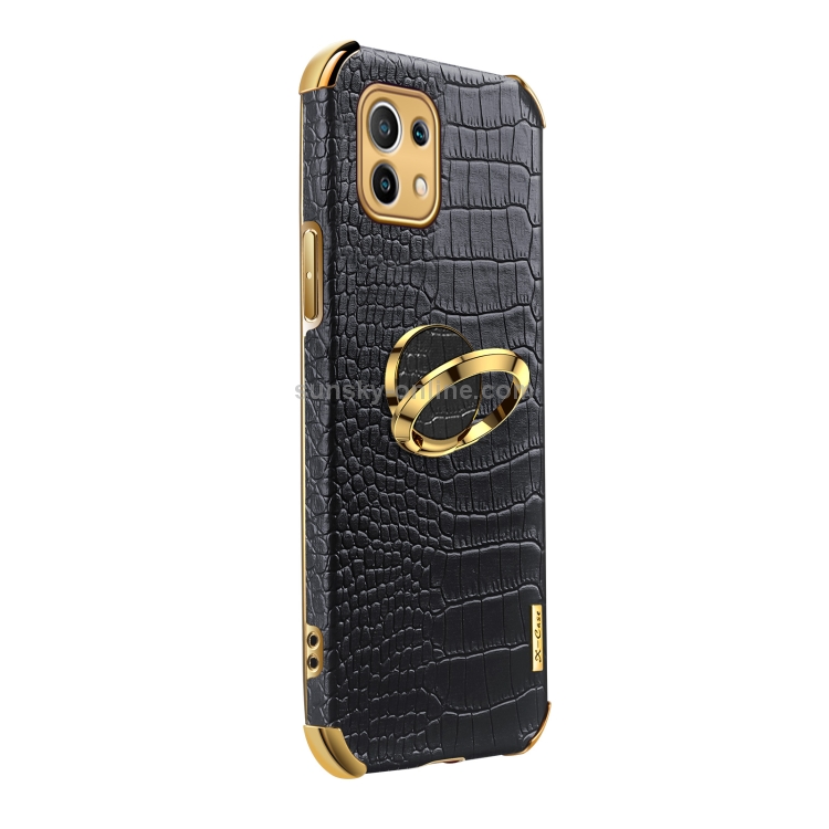 Para Xiaomi Mi 11 6D Funda Magnética de Cuero Magnético de Patrón de Cocodrilo con TPU con Soporte de Anillo (Negro)