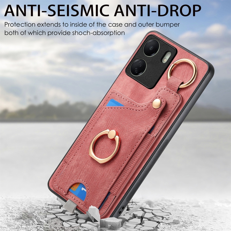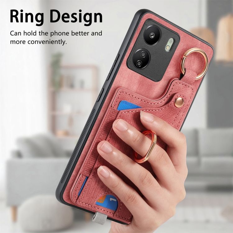 Para Xiaomi Mi 11 Funda para Teléfono con Bolsa para Tarjeta con Anillo y Sensación de Piel Retro con Lazo para Colgar (Rosa)