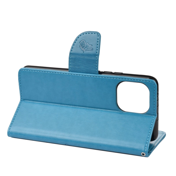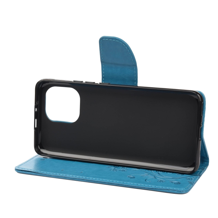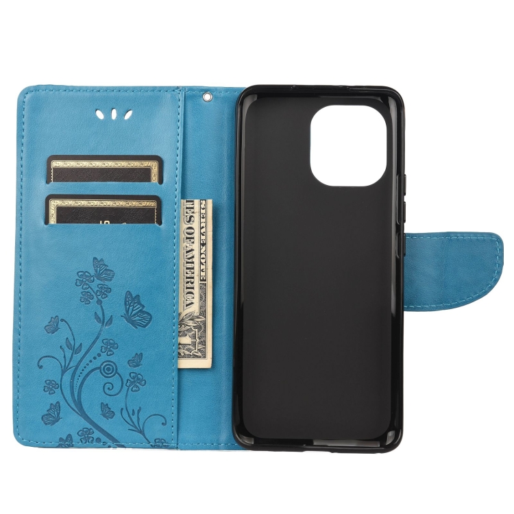 Para Xiaomi Mi 11 Mariposa Patrón de Flor Funda Horizontal Flip Funda con Soporte y Ranuras para Tarjetas y Billetera (Azul)