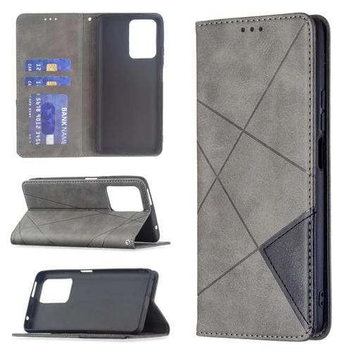 Para Xiaomi Mi 11T Rhombus Texture Horizontal Flip de Cuero Magnético Funda con Soporte y Ranuras de Tarjetas (Gris)