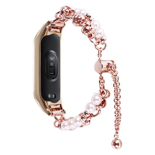 Banda de Reloj Metal para Xiaomi Mi Band 7 con Cadena de Perlas Dobles (Oro Rosa)