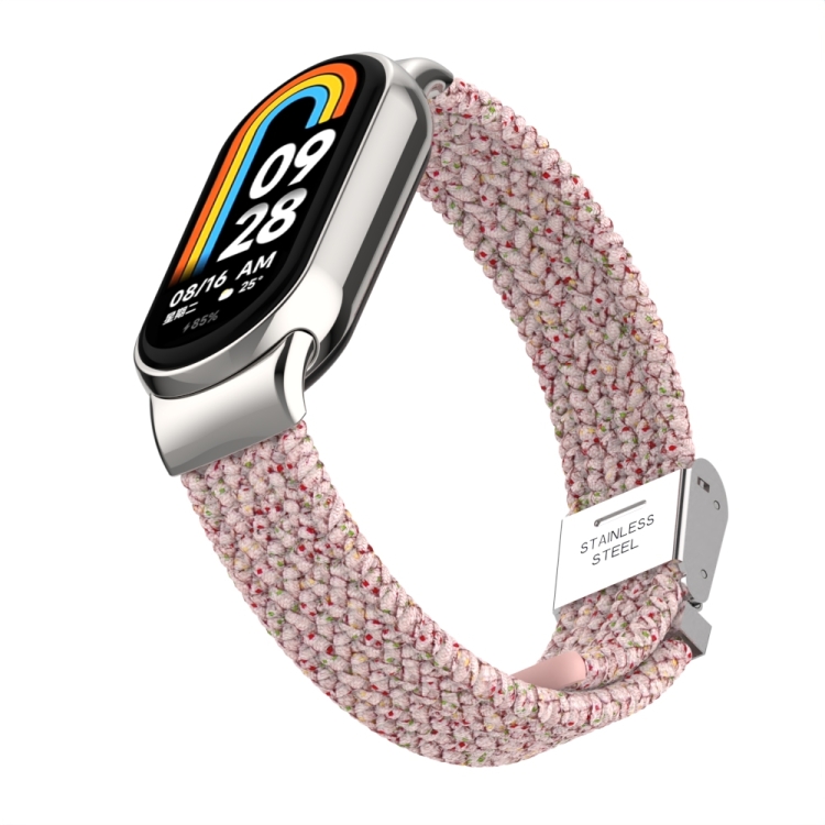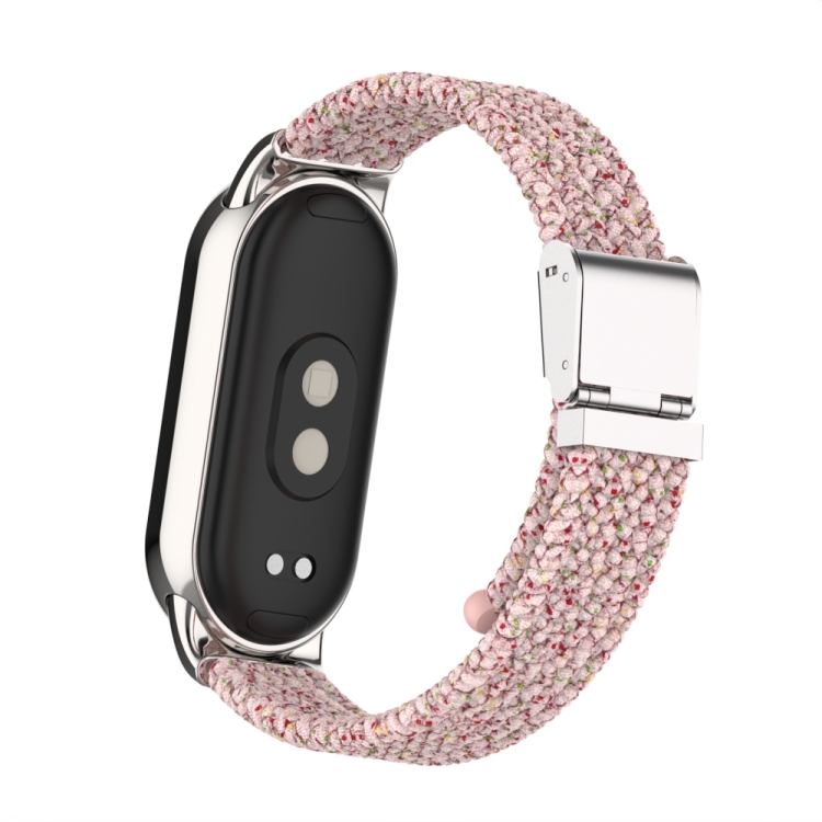 Correa para Xiaomi Mi Band 8/8 Nfc con Metal Head y Hebilla de Acero Trenzado de Nailon (Rosa Claro)