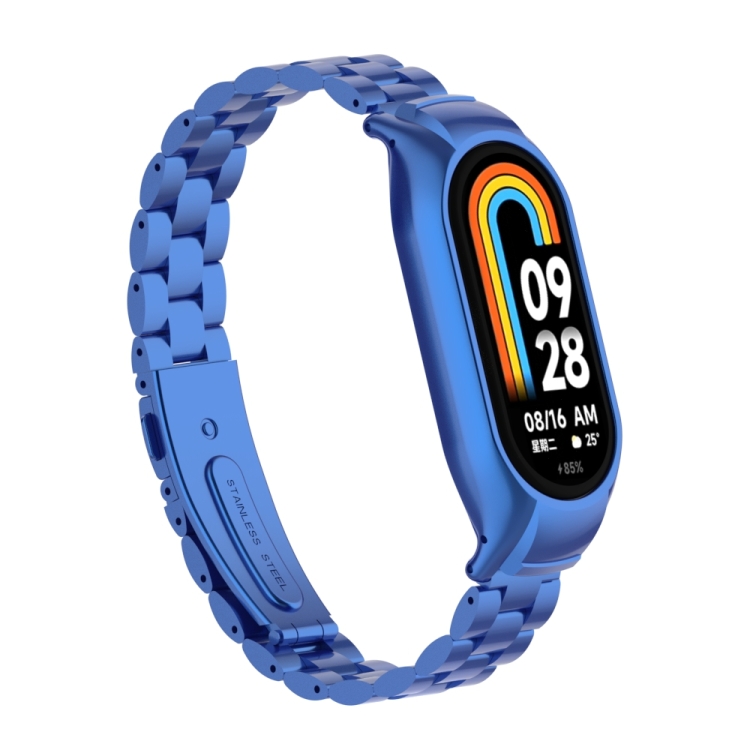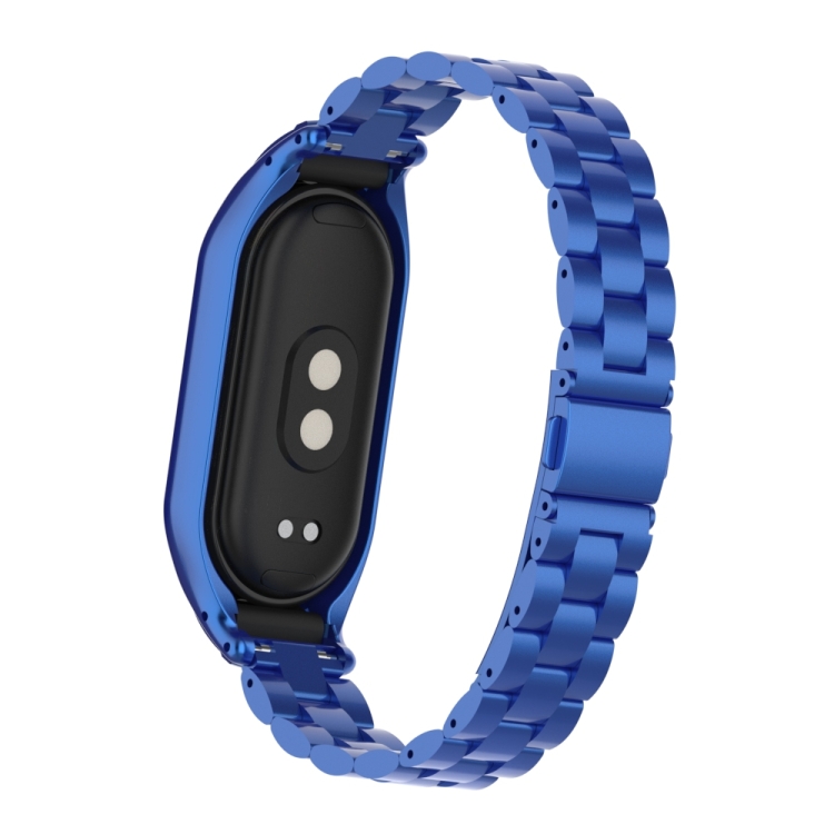 Caja de Metal Integrada + Correa de Reloj Tres Cuentas para Xiaomi Mi Band 8 (Azul)