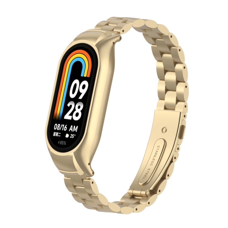 Caja de Metal Integrada + Correa de Reloj para Xiaomi Mi Band 8 (Oro Retro)