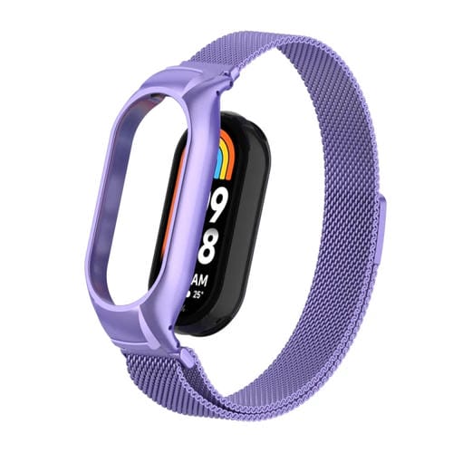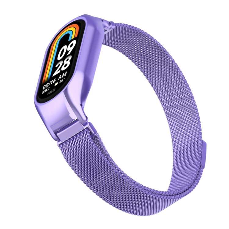 Para Xiaomi Mi Band 8 Estuche de Metal Integrado + Banda de Reloj Magnética Milanesa (Hyun Purple)