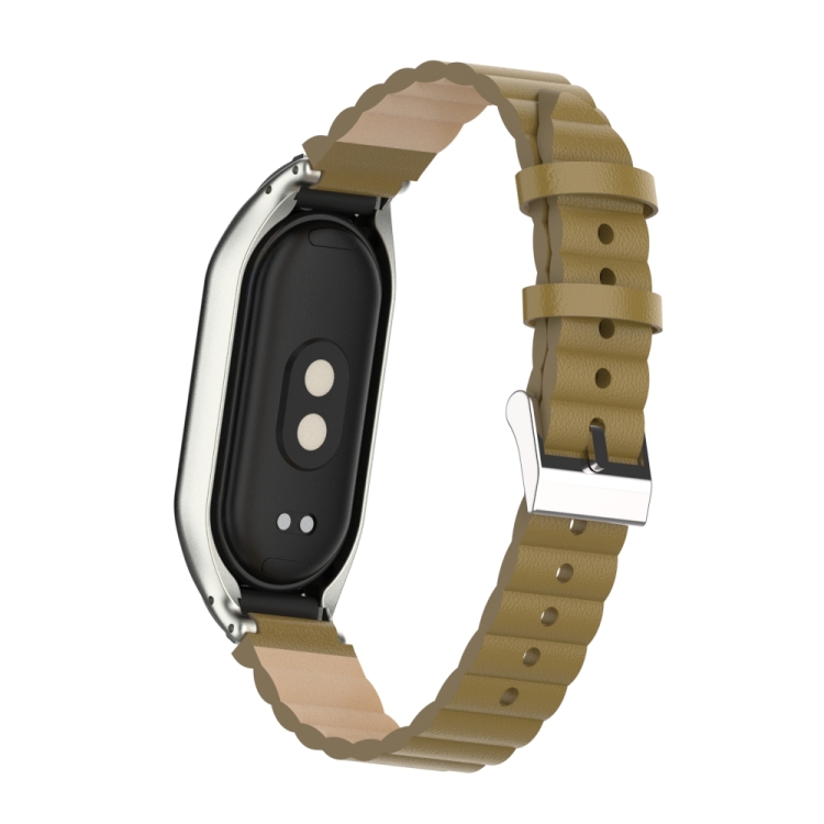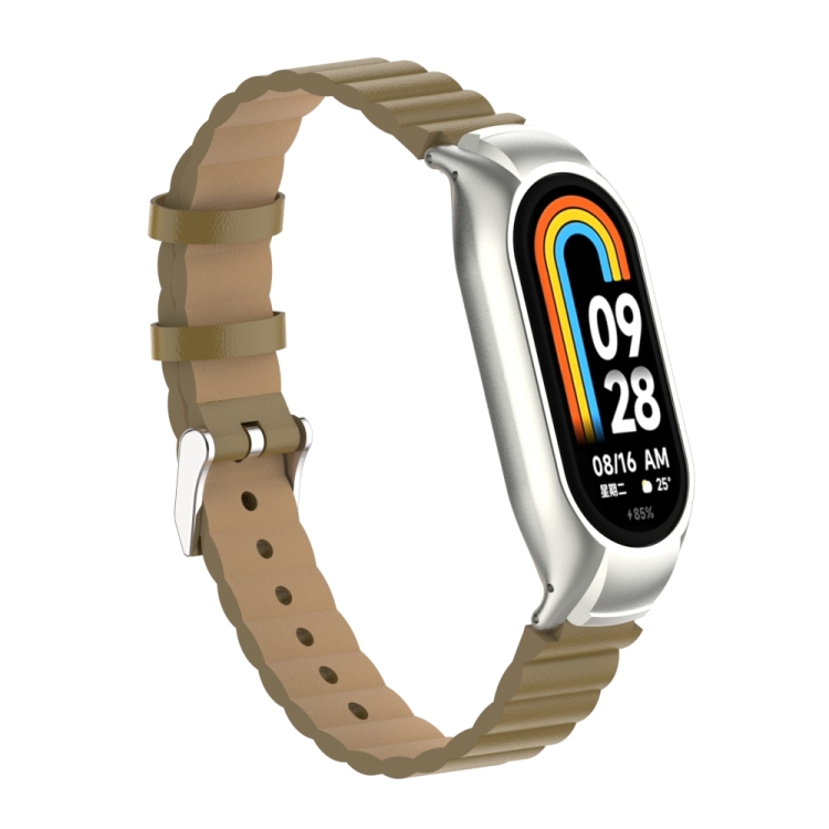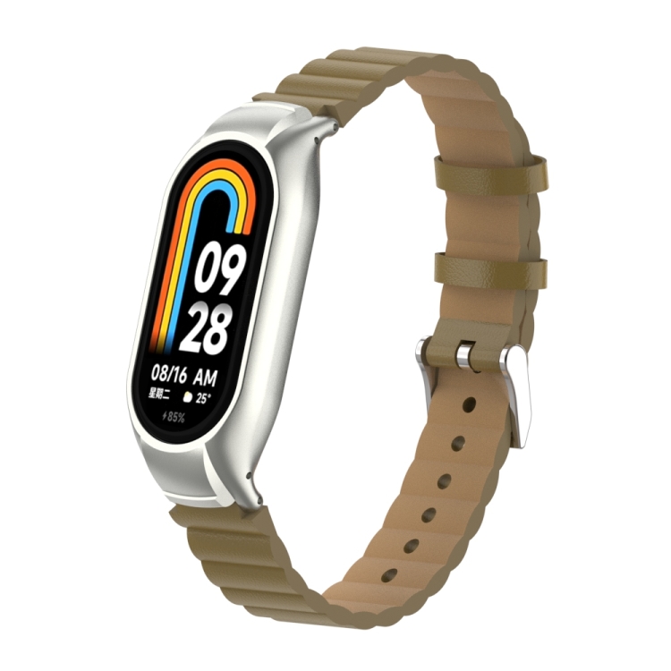 Estuche de Metal Integrado + Correa de Reloj de Cuero de Bambú para Xiaomi Mi Band 8 (Sillín)