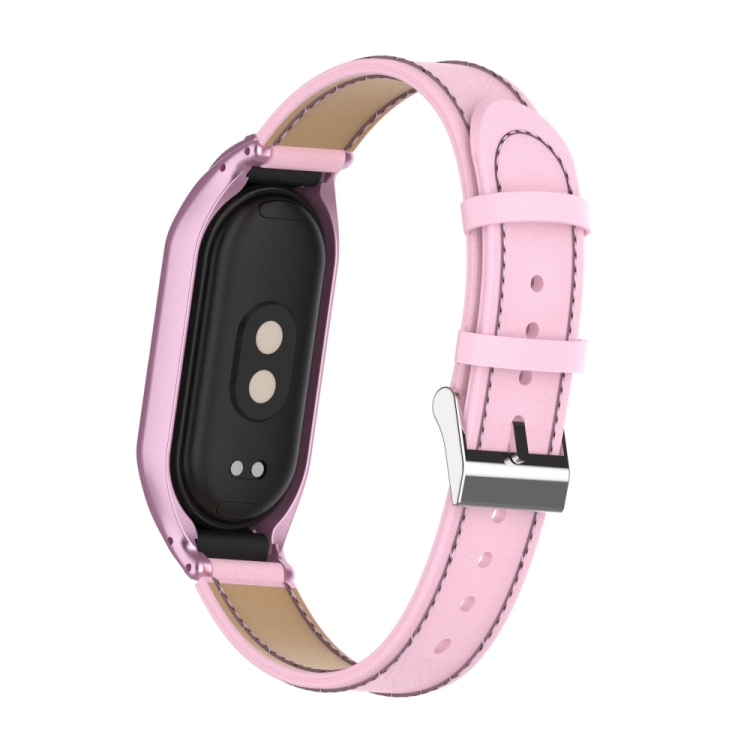 Estuche Metal Integrado + Correa Cuero Microfibra para Xiaomi Mi Band 8 (Rosa)
