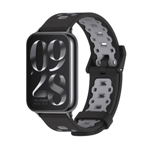 Correa de Silicona para Xiaomi Mi Band 8 Pro Mijobs Transpirable con Orificio Cuadrado (Negro Gris)