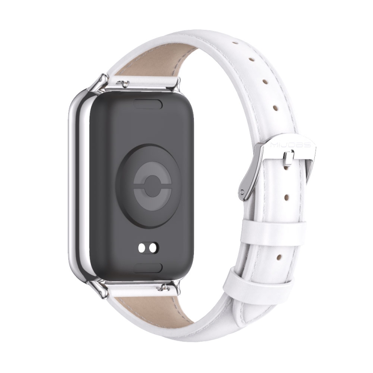Correa de Reloj para Xiaomi Mi Band 8 Pro Mijobs Cuero Genuino Delgada (Blanco Plateado)