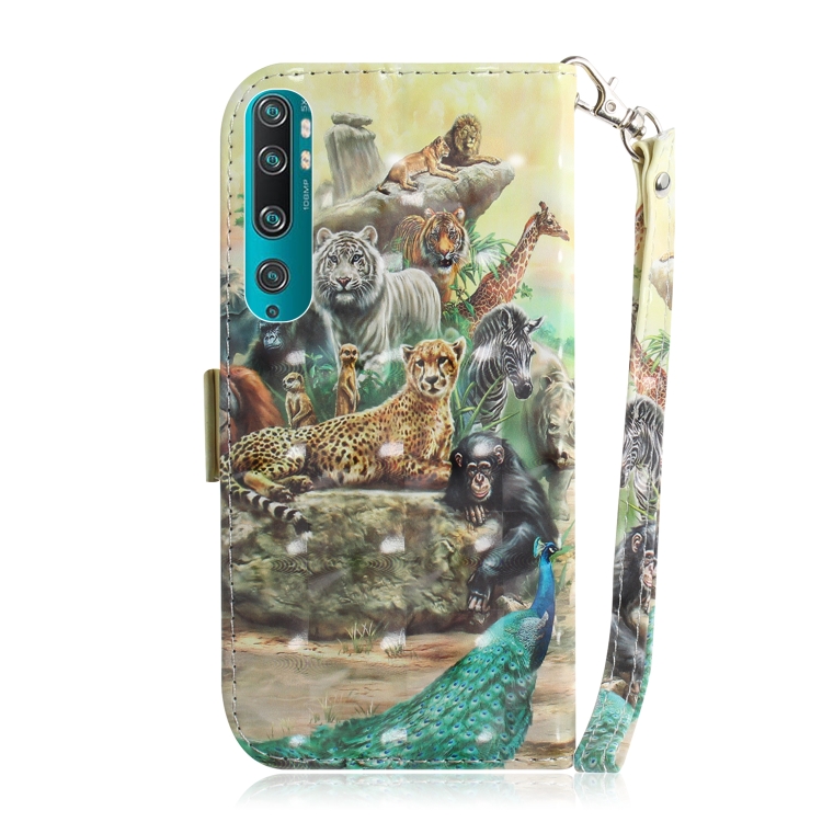 Para Xiaomi Mi Note 10 Funda de Cuero con Tapa Horizontal de Pintura 3D con Soporte y Ranura para Tarjeta y Billetera y Cordón (Zoo)