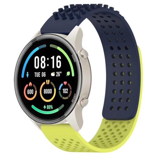 Correa de Silicona para Xiaomi Mi Watch Sport con Puntos 3D Transpirables y Orificios 22mm (Azul Medianoche + Verde Lima)