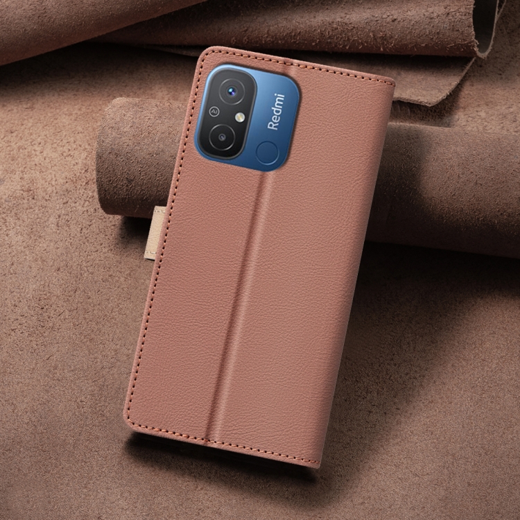 Para Xiaomi Poco C55 / Redmi 12C Funda de Teléfono de Cuero Antirrobo Rfid a Juego de Colores (Marrón)