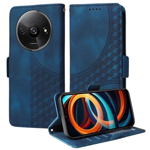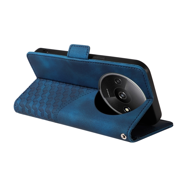 Para Xiaomi Poco C61 Funda para Teléfono de Cuero Estrellado con Rombos En Relieve (Azul)