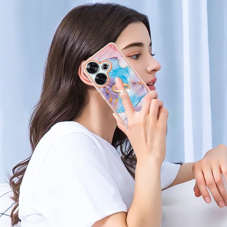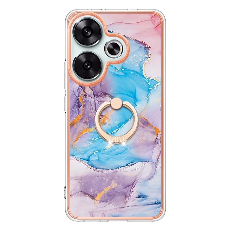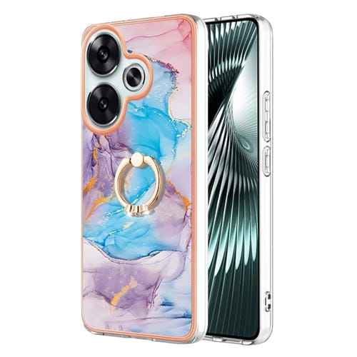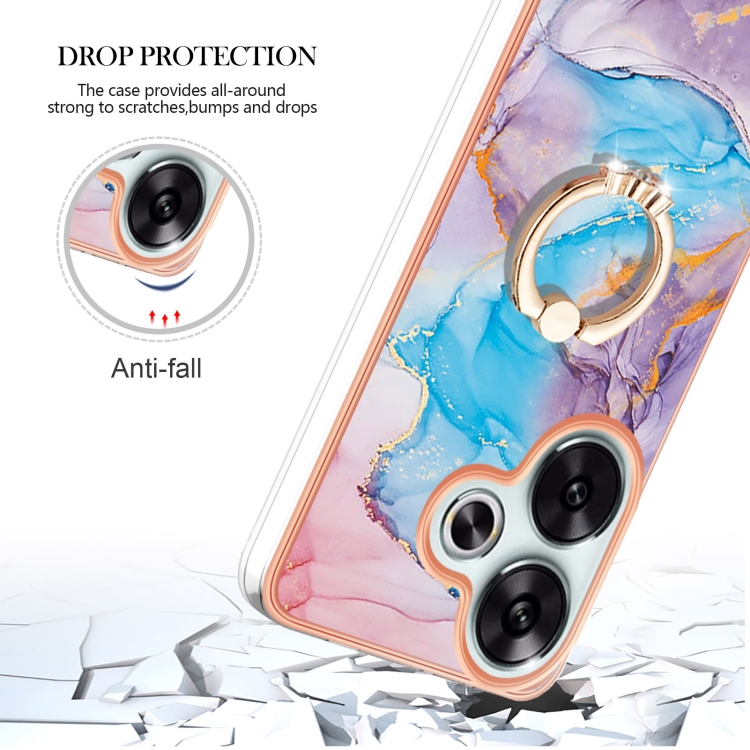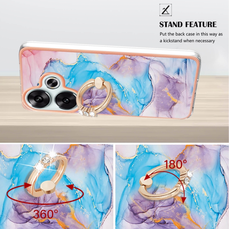 Para Xiaomi Poco F6 5G Estuche a Prueba de Golpes con Patrón de Galvanoplastia Imd TPU con Soporte de Anillo de Diamantes de Imitación (Mármol Azul Vía Láctea)