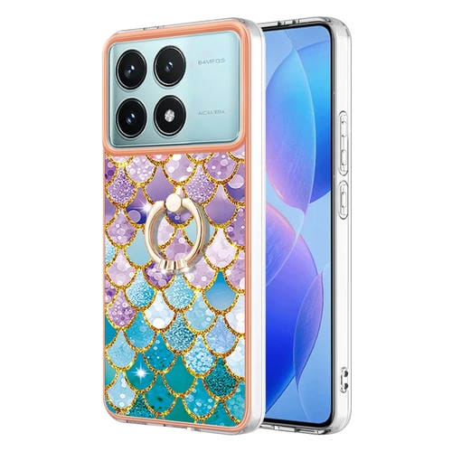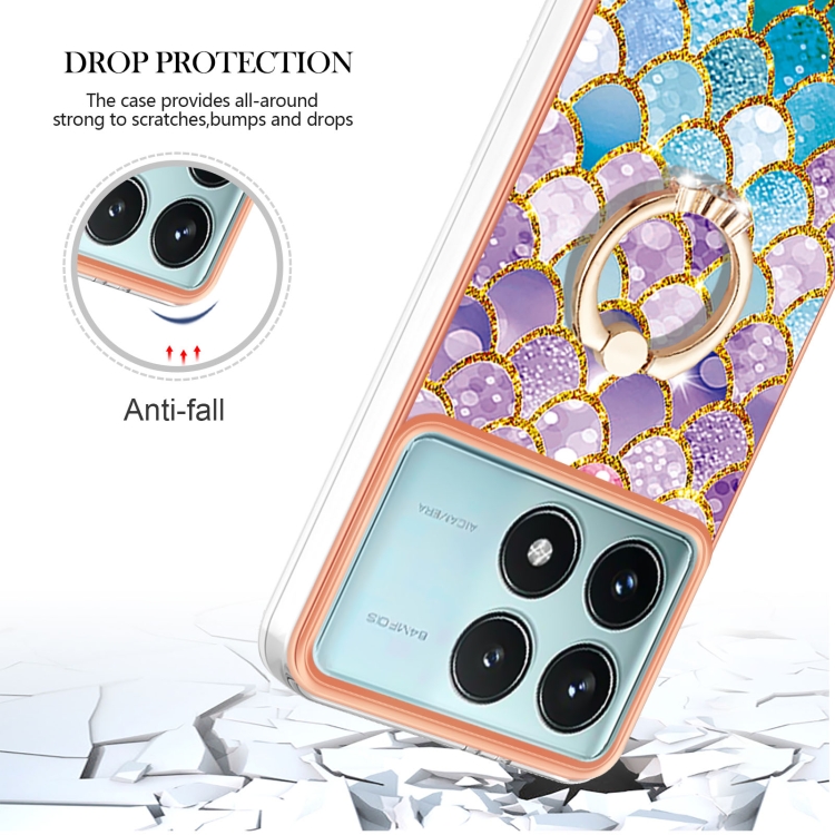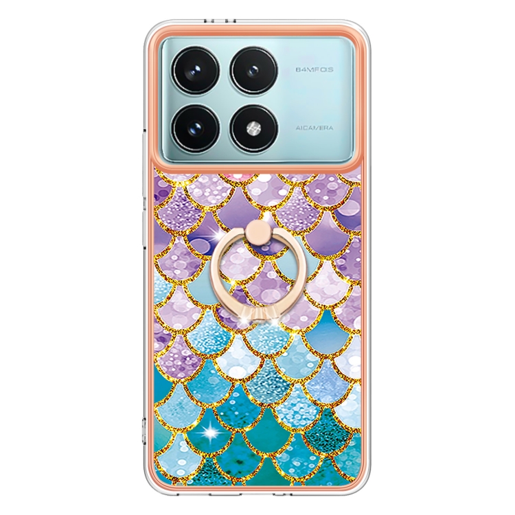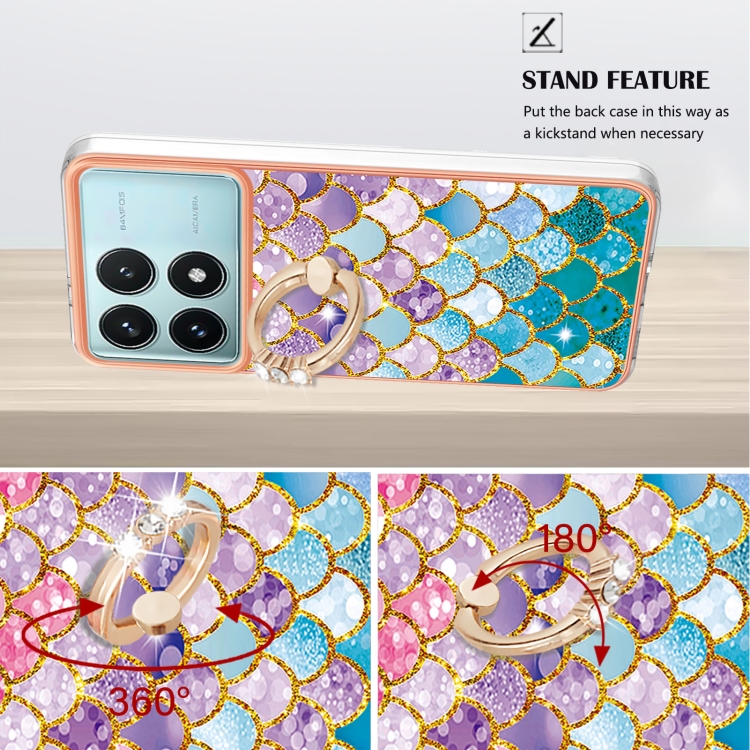 Para Xiaomi Poco F6 Pro 5G Estuche a Prueba de Golpes con Patrón de Galvanoplastia Imd TPU con Soporte de Anillo de Diamantes de Imitación (Escamas de Colores)
