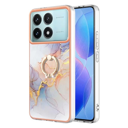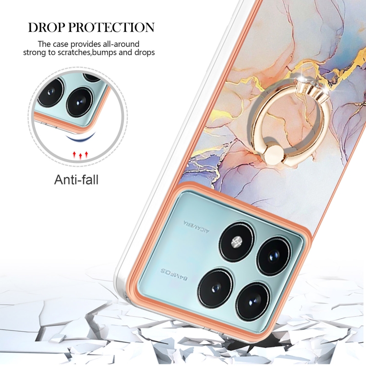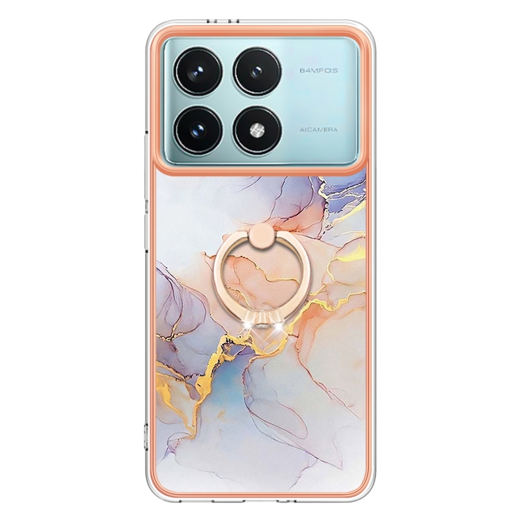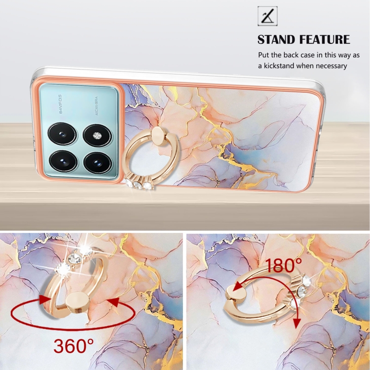 Para Xiaomi Poco F6 Pro 5G Estuche a Prueba de Golpes con Patrón de Galvanoplastia Imd TPU con Soporte de Anillo de Diamantes de Imitación (Mármol Blanco Vía Láctea)