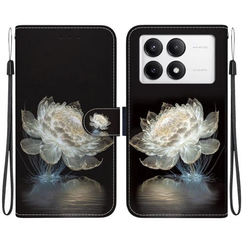Para Xiaomi Poco F6 Pro Funda de Teléfono de Cuero con Dibujo Coloreado con Textura de Cristal (Peonía de Cristal)