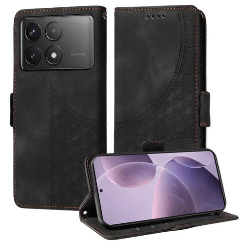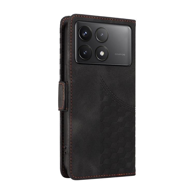 Para Xiaomi Poco F6 Pro Funda de Teléfono de Cuero Estrellado con Rombos En Relieve (Negro)