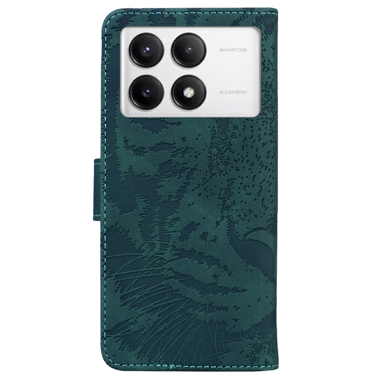 Para Xiaomi Poco F6 Pro Tiger Estampado En Relieve Funda de Cuero con Tapa para Teléfono (Verde)