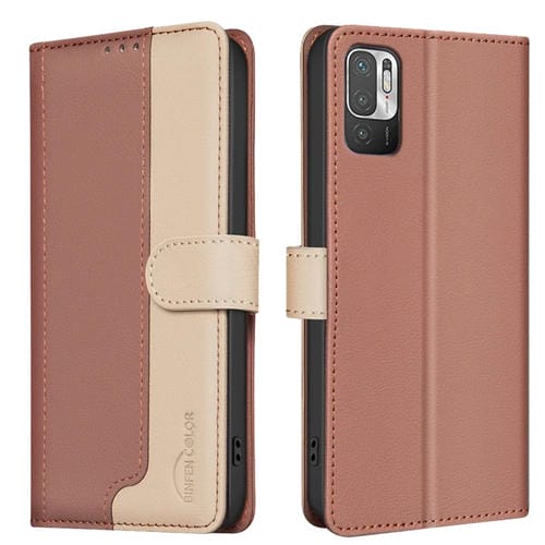 Para Xiaomi Poco M3 Pro / Redmi Note 10 5G Funda de Cuero Antirrobo Rfid a Juego de Colores (Marrón)