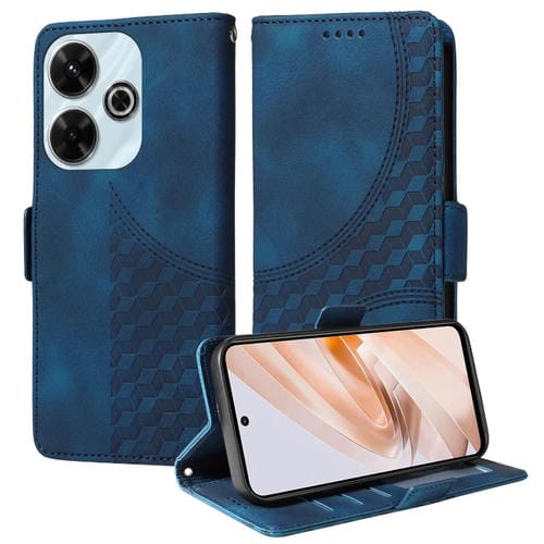 Para Xiaomi Poco M6 4G Funda de Teléfono de Cuero Estrellado con Rombos En Relieve (Azul)