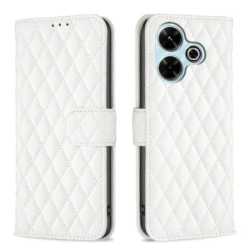 Para Xiaomi Poco M6 4G / Redmi 13 4G Diamond Lattice Wallet Funda de Cuero con Tapa para Teléfono (Blanco)