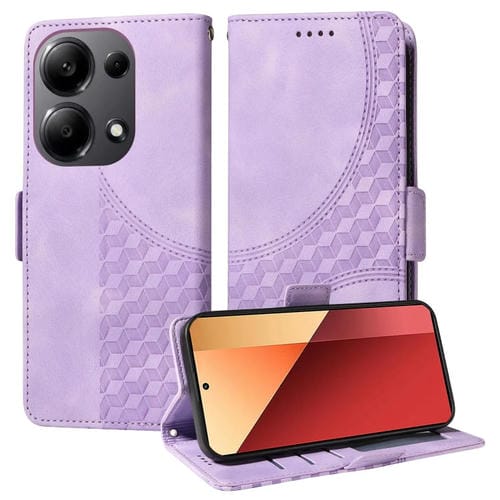 Para Xiaomi Poco M6 Pro 4G Funda para Teléfono de Cuero Estrellado con Rombos En Relieve (Púrpura)