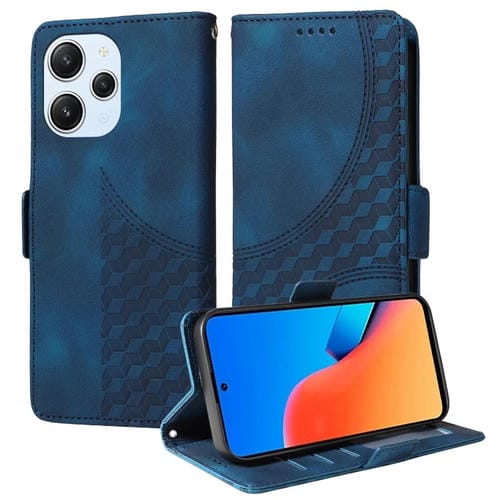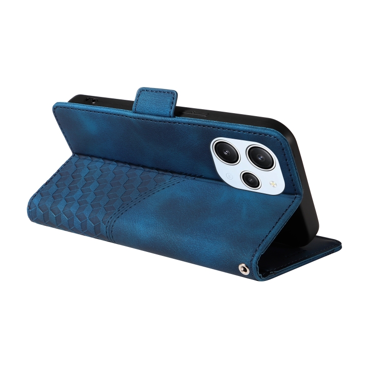 Para Xiaomi Poco M6 Pro 5G Funda para Teléfono de Cuero Estrellado con Rombos En Relieve (Azul)