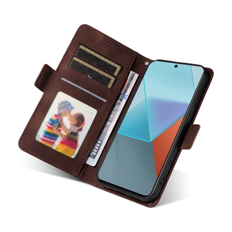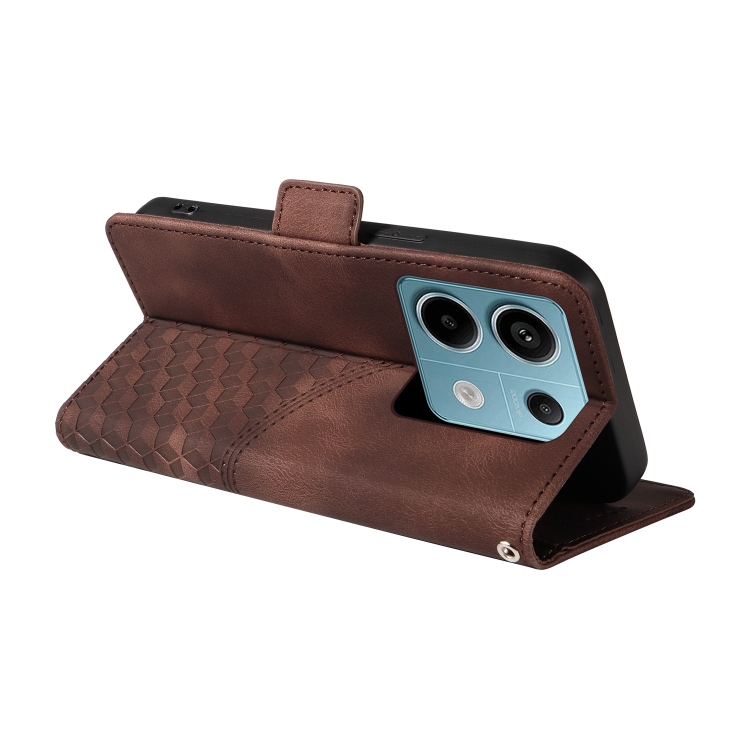 Para Xiaomi Poco X6 Funda para Teléfono de Cuero Estrellado con Rombos En Relieve (Marrón)