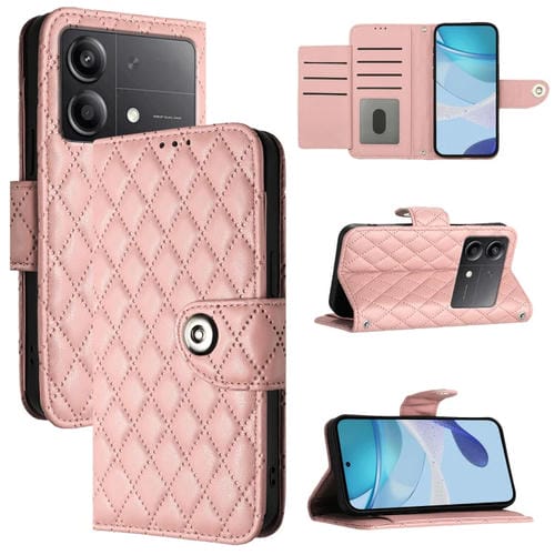 Para Xiaomi Poco X6 Neo Funda para Teléfono con Tapa de Cuero con Textura Rómbica y Cordón (Rosa Coral)