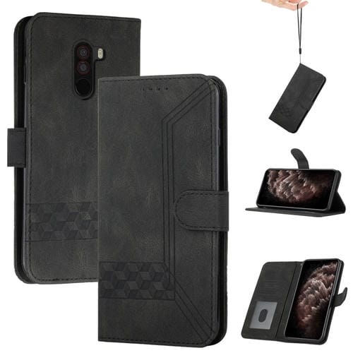 Para Xiaomi Pocophone F1 Piel Cúbica Siente la Caja del Teléfono de Cuero con Flip (Negro)