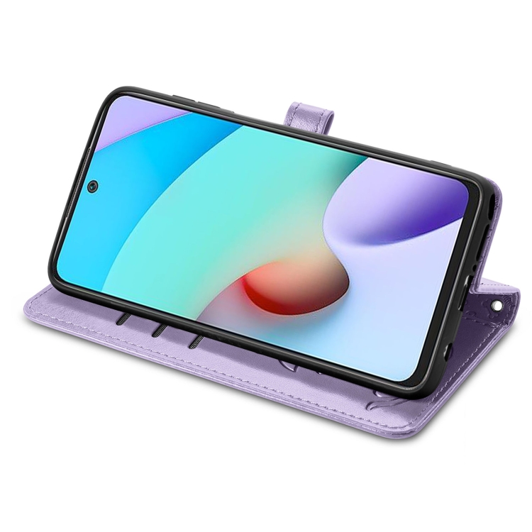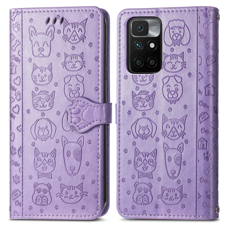 Para Xiaomi Redmi 10 Encantador Patrón de Estampado de Gatos y Perros con Estampado Horizontal Flip Funda de Cuero, con Soporte y Tragamonedas y Billetera y Billetera y Cordón de Dibujos Animados (Púrpura)