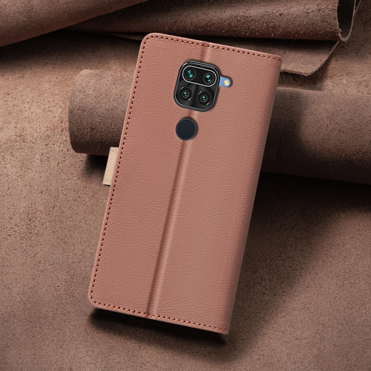 Para Xiaomi Redmi 10X 4G / Note 9 Funda de Teléfono de Cuero Antirrobo Rfid a Juego de Colores (Marrón)