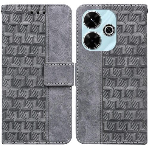 Para Xiaomi Redmi 13 4G Funda de Teléfono de Cuero con Relieve Geométrico (Gris)