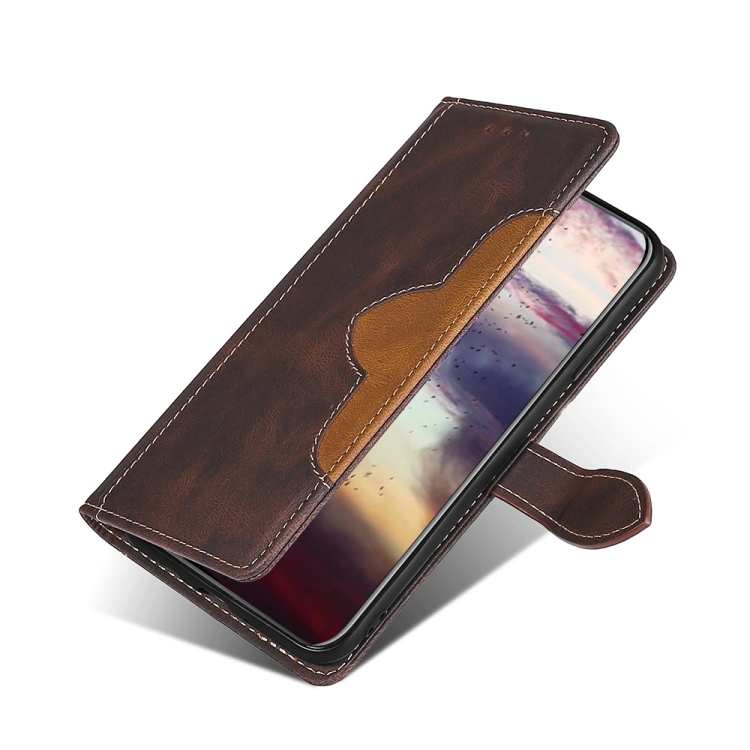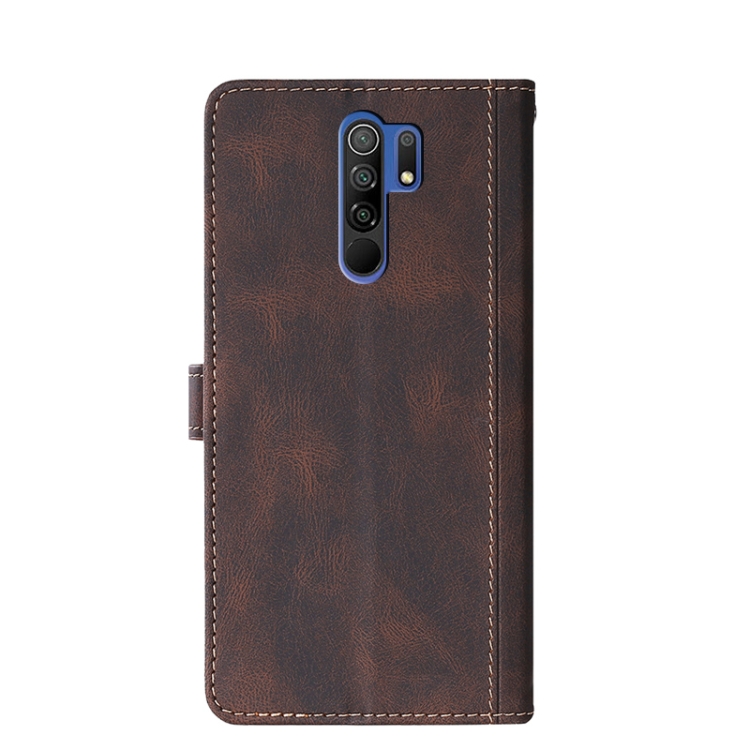 Para Xiaomi Redmi 9 Costuras Siente la Piel con Hebilla Magnética Funda de Cuero Horizontal Flip Pu con Soporte y Tragamonedas y Billetera (Marrón)
