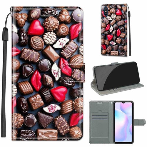 Para Xiaomi Redmi 9A Dibujo de Color de Voltaje Cierre Magnético Horizontal Flip Pu Funda de Cuero con Soporte y Ranuras de Tarjetas (C06 Red Lip Chocolate)