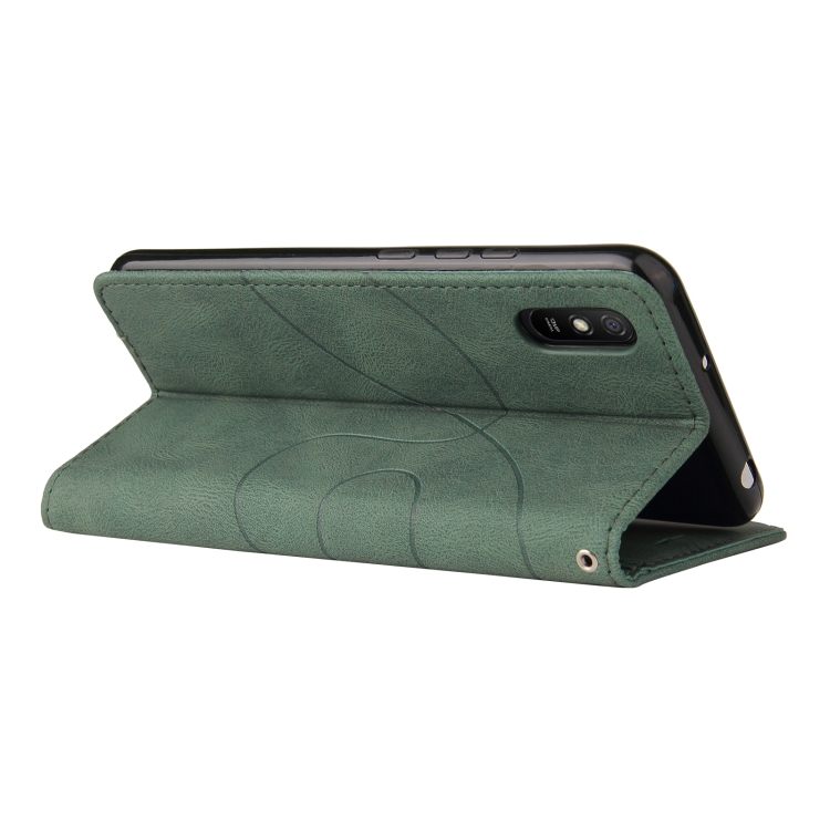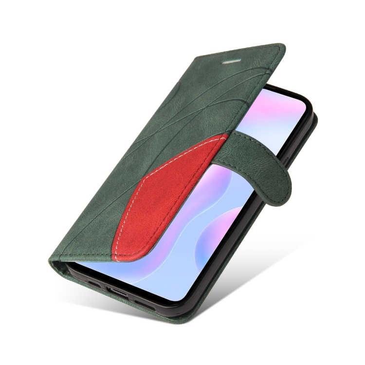 Para Xiaomi Redmi 9A Empalme de Doble Color Funda de Cuero Horizontal Flip Pu con Soporte y Tragamonedas y Billetera (Verde)